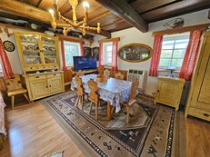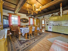 Inside the cottage: there is an entrance hall, smaller "relax" room with a sitting (table, bench, chairs), large living room with the airy kitchen and dining corner (TV+SAT, sofa, dining table with a chairs, big kitchen unit, built-in stove with the electric hob and separate oven, microwave, fridge, electric kettle, grill, coffee maker), bathroom (wash-basin, bath with a shower, toilet), garage with an entrance to the house, upper floor: 1/3 bedroom with a sitting (double bed, separate bed) that is connected with another 1/2 bedroom with a sitting (double bed), 1/4 bedroom with a balcony (2 double beds). Heating: gas
