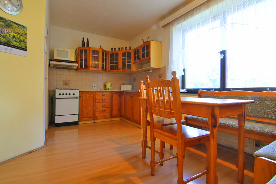 JESENÍKY MOUNTAINS: brick house in a quiet part of the village under the ridges, 4 km from Jeseník Spa. In the building: 2/2, 1/4 bedroom, kitchen (fridge, cooker, microwave), lifing room with TV, 2x WC, shower, bath. Heating: gas heating.
