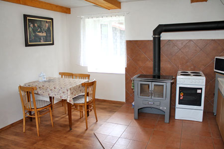 UNDER THE GIANT MOUNTAINS: cottage (farmhouse) with WiFi internet and fireplace in a small village under Giant Mountains, 30 km from Bohemia paradise, 25 km from Janské Lázně and 29 km from Špindlerův Mlýn. ,br>Inside: entry room, 2x fridge, living room with kitchen and dining place (TV + SAT, fireplace, one extra bed, table, el. stove, microwave, kettle), 1/3 bedroom, bathroom (sink, bath with shower, washing machine), toilet. Heating: solid fuel - fireplace.